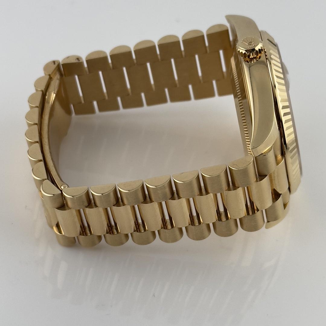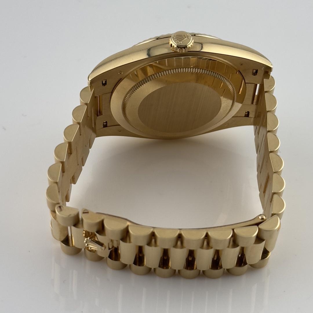 Rolex Day-Date 40 Champagne Baguette Diamond Dial on President Ref 228238 with New Style Card Green